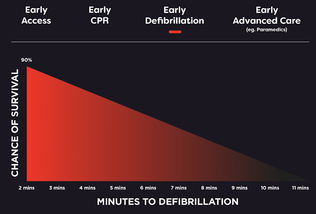 Με την άμεση εφαρμογή ΚΑΡ.Π.Α. και χρήση Αυτόματου Εξωτερικού Απινιδωτή στα πρώτα 2 λεπτά, έχουμε μέχρι και 90% πιθανότητες ανάταξης της καρδιάς.